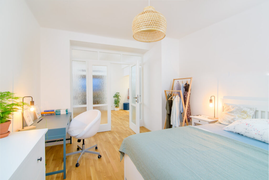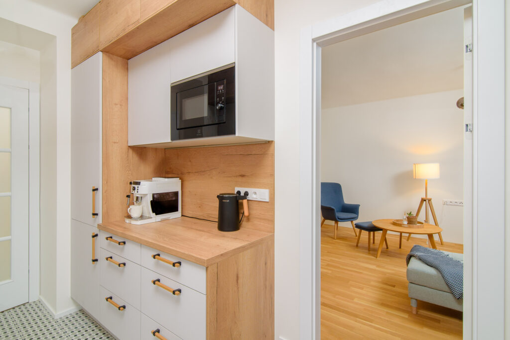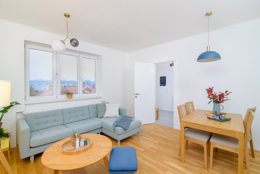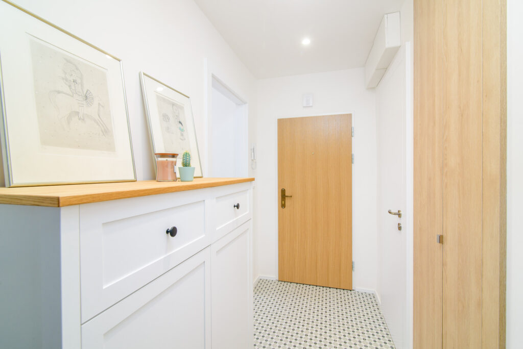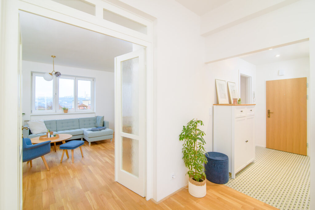 Rekonstrukce bytu od A-Z. Kompletní rekonstrukce bytu na Praze 6, Bubeneč. V bytu byla realizována nová kuchyň, koupelna, obývací pokoje a společné prostory.